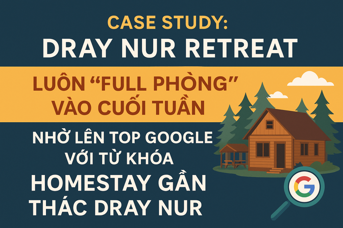 👉 Trong phần tiếp theo, seobeginer.net sẽ chia sẻ chiến lược SEO địa phương đã giúp Dray Nur Retreat “lật ngược tình thế” – từ ẩn danh trên Google thành top 1 từ khóa “homestay gần thác Dray Nur” chỉ sau 3 tháng.